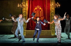 Kathrin Wehlisch spielt den Bankprokuristen. Sie soll herausfinden, wo ihre Schuld liegen könnte: In einer rätselhaft ver-rückten Wirklichkeit und in einer Serie leicht absurder Dialoge mit der Vermieterin, der Zimmernachbarin, dem Onkel und vielen weiteren Figuren. Inneres Erleben und äußere Wirklichkeit vermischen sich zu einem zunehmend bedrückenden Alptraum. Barrie Kosky hat diese Literatur nun mit Kafkas jüdischem Hintergrund verbunden. Er inszeniert den Prozess als ein jiddisches Vaudeville, einer Revue mit Tanz und Gesang.