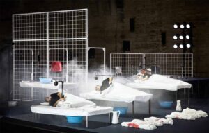 Das Gastspiel eröffnete das Festival in Avignon. Es gibt, unterstützt durch eine Musikerin und einen Musiker, den drei Frauen ihre Stimme zurück, erzählt von ihrer Leidenserfahrung. Chahrour inszeniert ein Ritual, in dem Musik und Kunst die Befreiung vom Joch der modernen Leibeigenschaft betreiben sollen.
