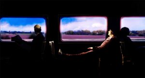 Wobei vier drehbare Monitore zugleich Landschaften hinter Zugfenstern, Caféhausfenster, Bücherwände oder andere Inneneinrichtungen wie aus dem Nichts hervorzaubern. Auch tauchen auf ihnen immer wieder die vier Spielkartenfarben auf, die als Leitmetaphern durch den Abend führen: Aus ihnen sprudeln die Urtriebkräfte des Lebens.